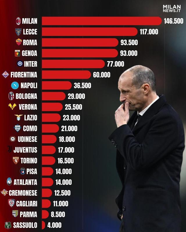 本赛季意甲俱乐部罚款金额排行榜: